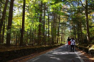 テニスコート、別荘地、万平ホテルなど20分のコースに加え、ささやきの小径や鹿島の森、もしくは八田別荘や諏訪神社※を巡ることが出来ます。よく選ばれる人気コースです!
